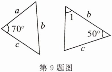9. (教材第 31 页习题第 3 题变式)如图所示的两个三角形全等,则 $\angle 1$ 的度数为(