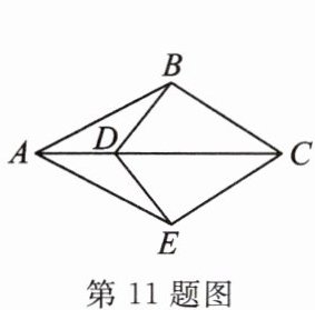11. 如图所示,将 $\triangle ABC$ 沿 $AC$ 对折,点 $B$ 与点 $E$ 重合,$D$ 为 $AC$ 上一点,则全等的三角形有