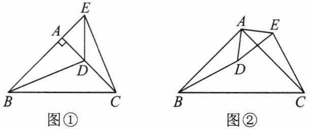 (2)类比探究:将图①中的$\triangle ADE$的位置改变一下,如图②,其他条件不变,则线段$BD$,$CE$又有怎样的数量关系和位置关系?请说明理由.