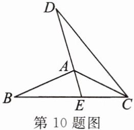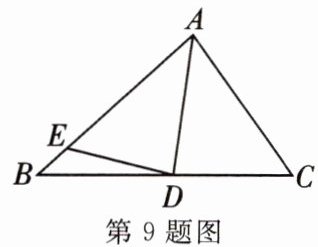 9. 如图,在$\triangle ABC$中,$AB = 5$,$BC = 6$,$AC = 4$,$AD平分\angle BAC$,交$BC于点D$. 在$AB上截取AE = AC$,连接$DE$,则$\triangle BDE$的周长为(