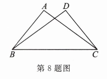 8. 如图,已知$\angle ABC= \angle DCB$,添加下列条件中的一个:①$\angle A= \angle D$;②$AC= DB$;③$AB= DC$,其中不能确定$\triangle ABC\cong\triangle DCB$的是