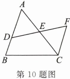 10. (教材第46页第17题变式)如图所示,已知$D是\triangle ABC的边AB$上一点,$DF交AC于点E$,$DE= EF$,$FC// AB$。若$BD= 2$,$CF= 5$,则$AB$的长为______。
