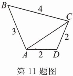 11. (河北省中考)四边形 ABCD 的边长如图所示,对角线 AC 的长度随四边形形状的改变而变化,当 $\triangle ABC$ 为等腰三角形时,对角线 AC 的长为(