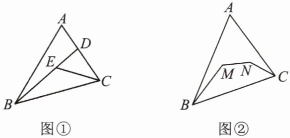 16. 【核心素养·推理能力】如图①,D 为 $\triangle ABC$ 的边 AC 上任意一点,连接 BD,E 为 BD 上任意一点,连接 CE.