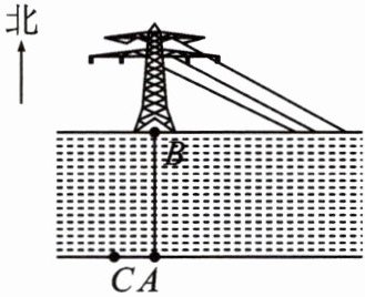 (2)求小刚在 $ A $ 处时与电线塔的距离(假设小刚一步为 $ 0.5m $)。