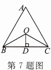 7. 如图,已知 $ \triangle ABC $ 的周长是 $ 20cm $,$ BO $,$ CO $ 分别平分 $ \angle ABC $ 和 $ \angle ACB $,$ OD \perp BC $ 于点 $ D $。若 $ OD = 3cm $,则 $ \triangle ABC $ 的面积为