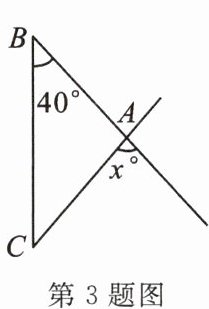 3. 如图所示,射线 $BA$,$CA$ 交于点 $A$,连接 $BC$,已知 $AB = AC$,$\angle B = 40^{\circ}$,那么 $x$ 的值是