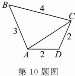10.(河北省中考)四边形$ABCD$的边长如图所示,对角线 $AC$ 的长度随四边形形状的改变而变化,当$\triangle ABC$为等腰三角形时,对角线$AC$的长为(