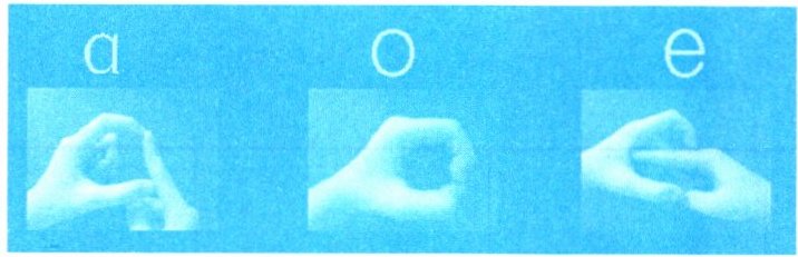 1. 左图对应“a”,双手模仿图中手势,嘴张大发“a”音。