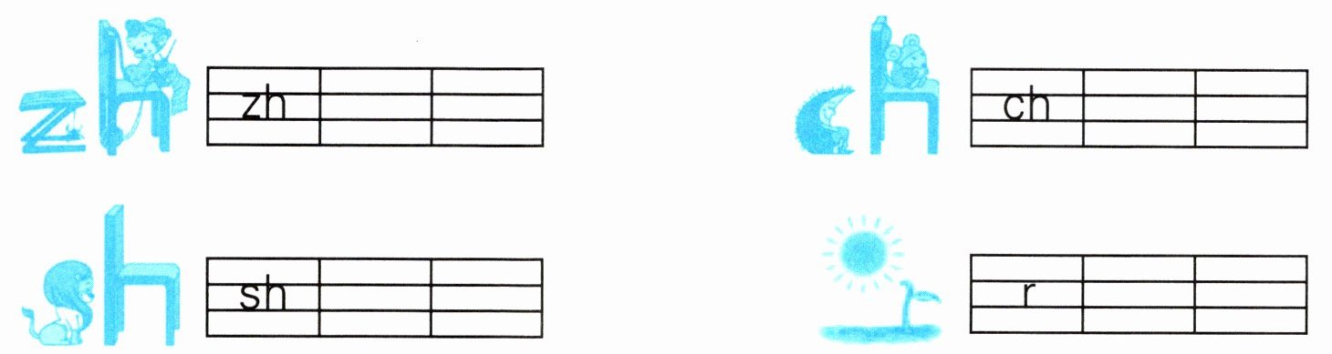 三、我 能 看 图 填 上 正 确 的 声 母。