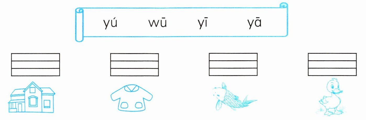 二、选 出 正 确 的 音 节 抄 在 图 片 上 面 的 拼 音 格 里。