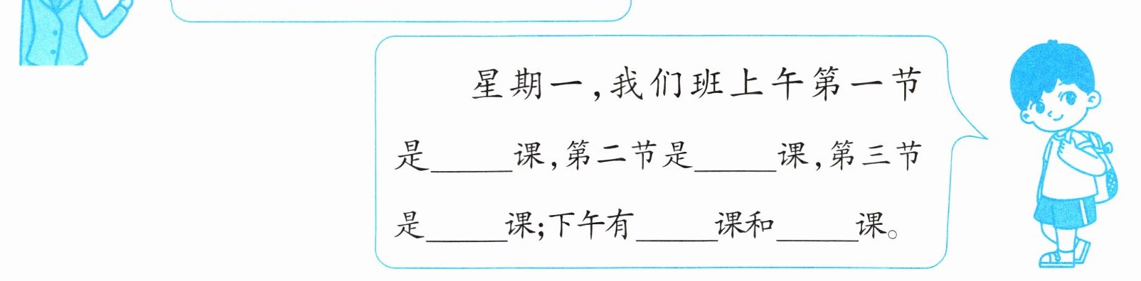 2. 对照课程表,和小明一起回答爸爸的问题。(把上面词语的序号填到“”上)