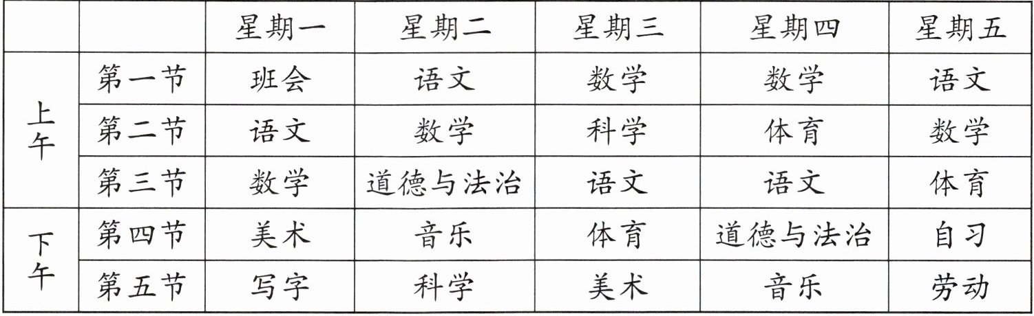 ①语文 ②班会 ③数学 ④美术 ⑤写字