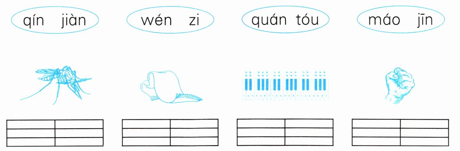 三、看 图 选 正 确 的 音 节,写 在 拼 音 格 里。