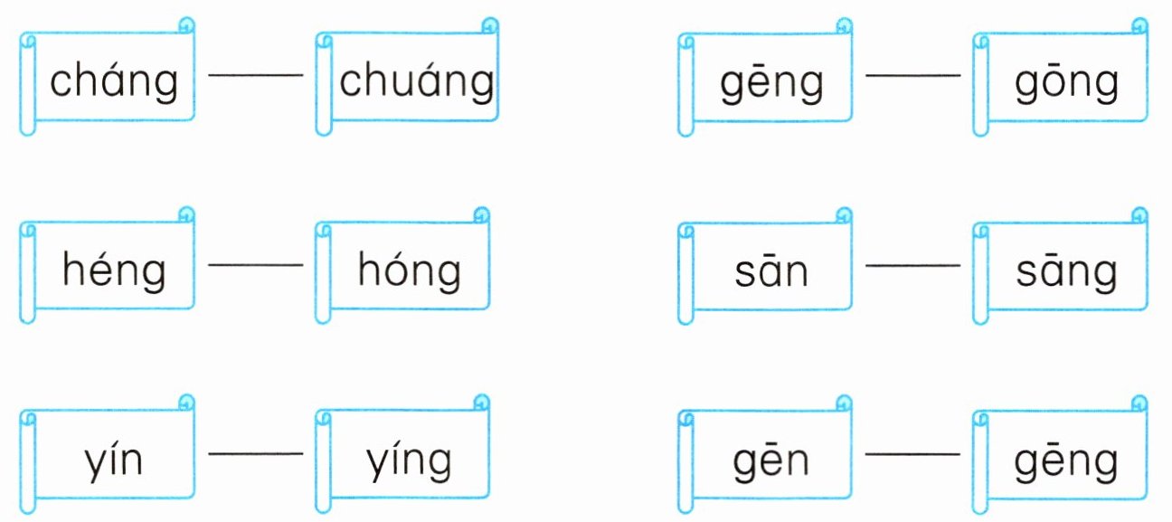 2. gēng — gōng:“gēng”读一声,“gōng”读一声 ,韵母不同,一个是“eng”,一个是“ong”。