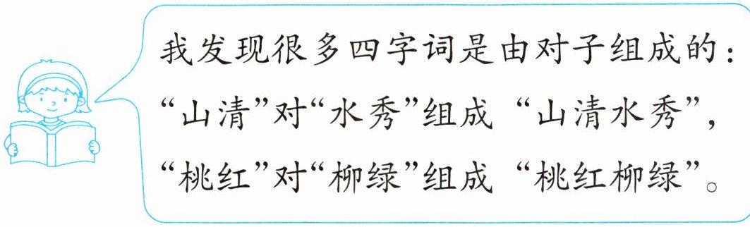 五、读一读下面的四字词,再说一说它们是由哪些对子组成的。