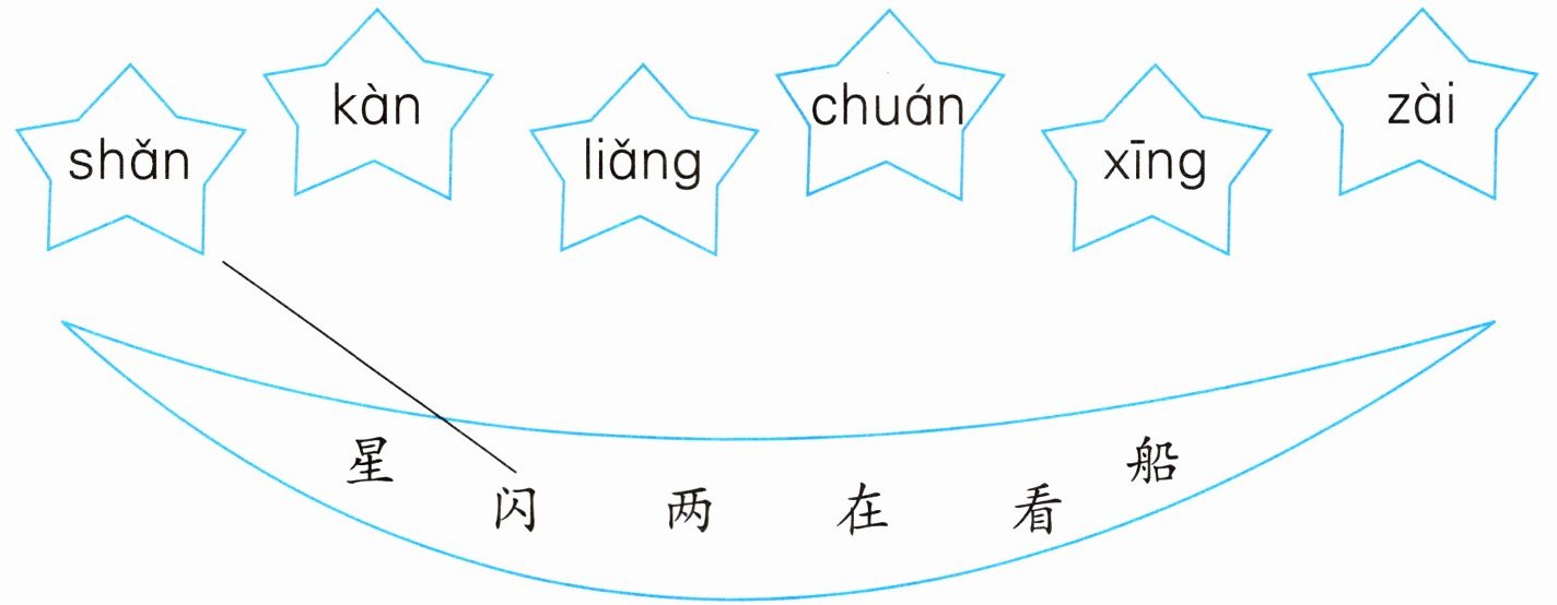 shǎn-闪;kàn-看;liǎng-两;chuán-船;xīng-星;zài-在