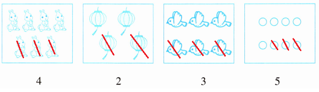 1. 数一数,把多的图形划掉。