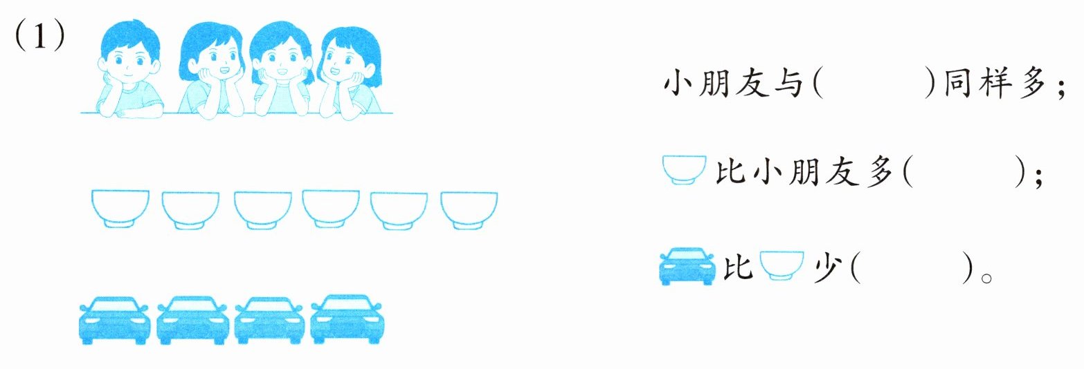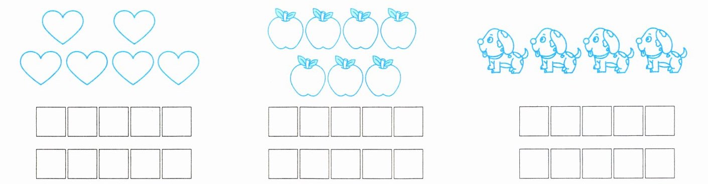 1. 把$□$涂一涂,使得涂色的$□$与物品数量同样多。