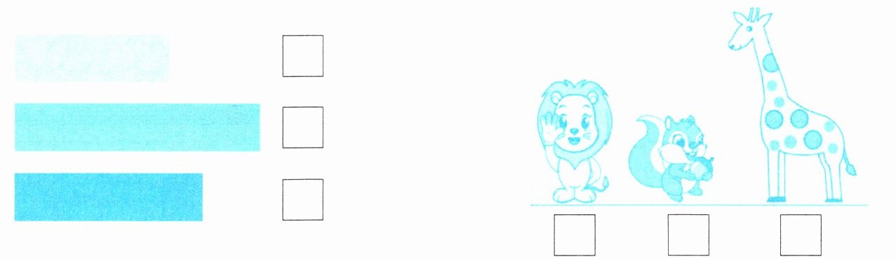 1. (1)最长的画“√”,最短的画“○”。 (2)小动物最高的画“○”,最矮的画“△”。