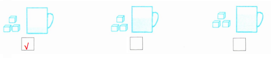 5. 把糖块放入杯中后,哪杯最淡?最淡的画“○”,最甜的画“√”。