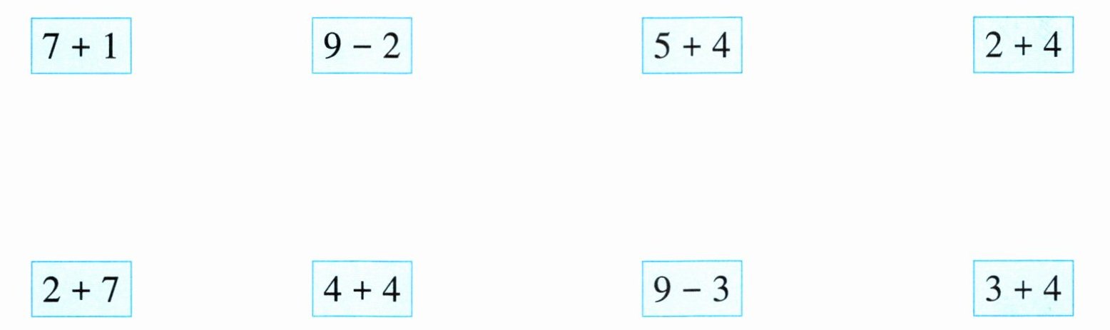 $6 - 6 =$ $4 + 6 =$ $7 + 2 =$ $3 + 6 =$ $1 + 8 =$