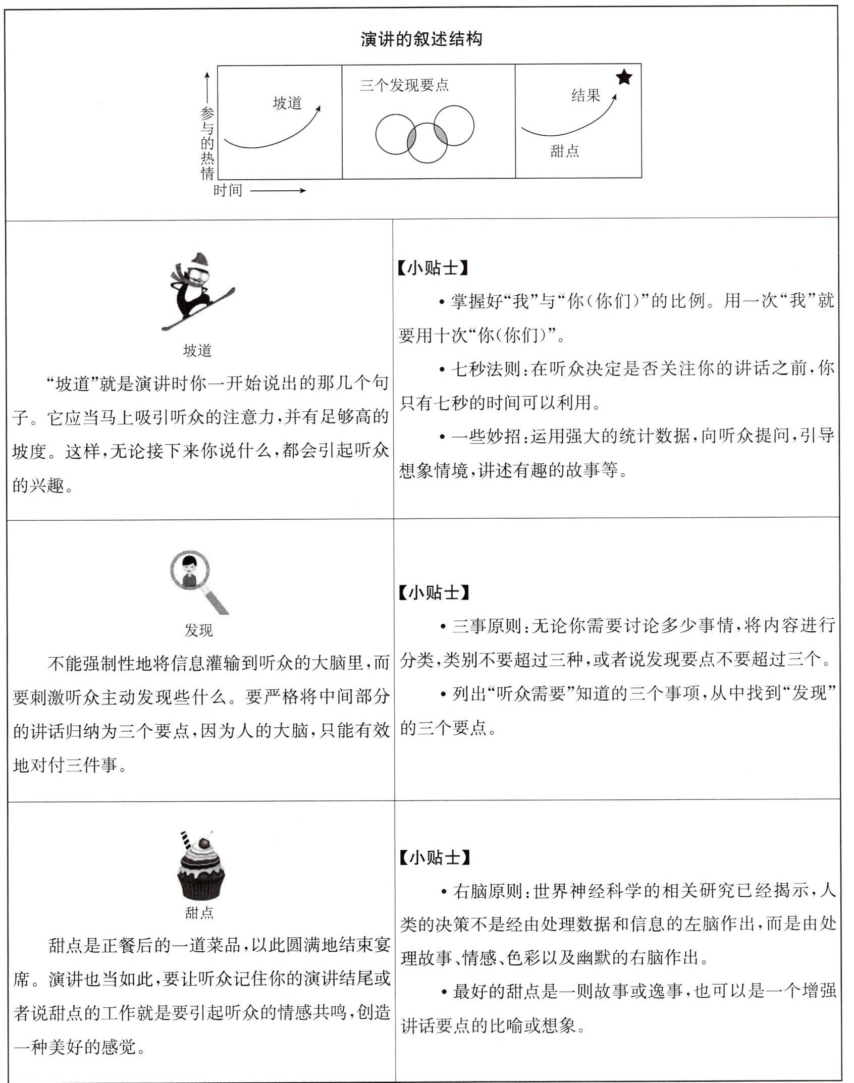 示例:符合。作者以讲故事的方式,追忆自己少年时代被迫参加武装斗争的往事,特殊的经历一下子吸引了听众的注意力;而且他的坡道简短有力,直奔战争主题,为演说“和平”做了铺垫,符合七秒法则。