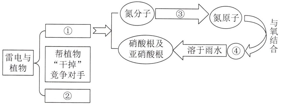 ③被雷电击中(1分) ④含氮的氧化物(1分)