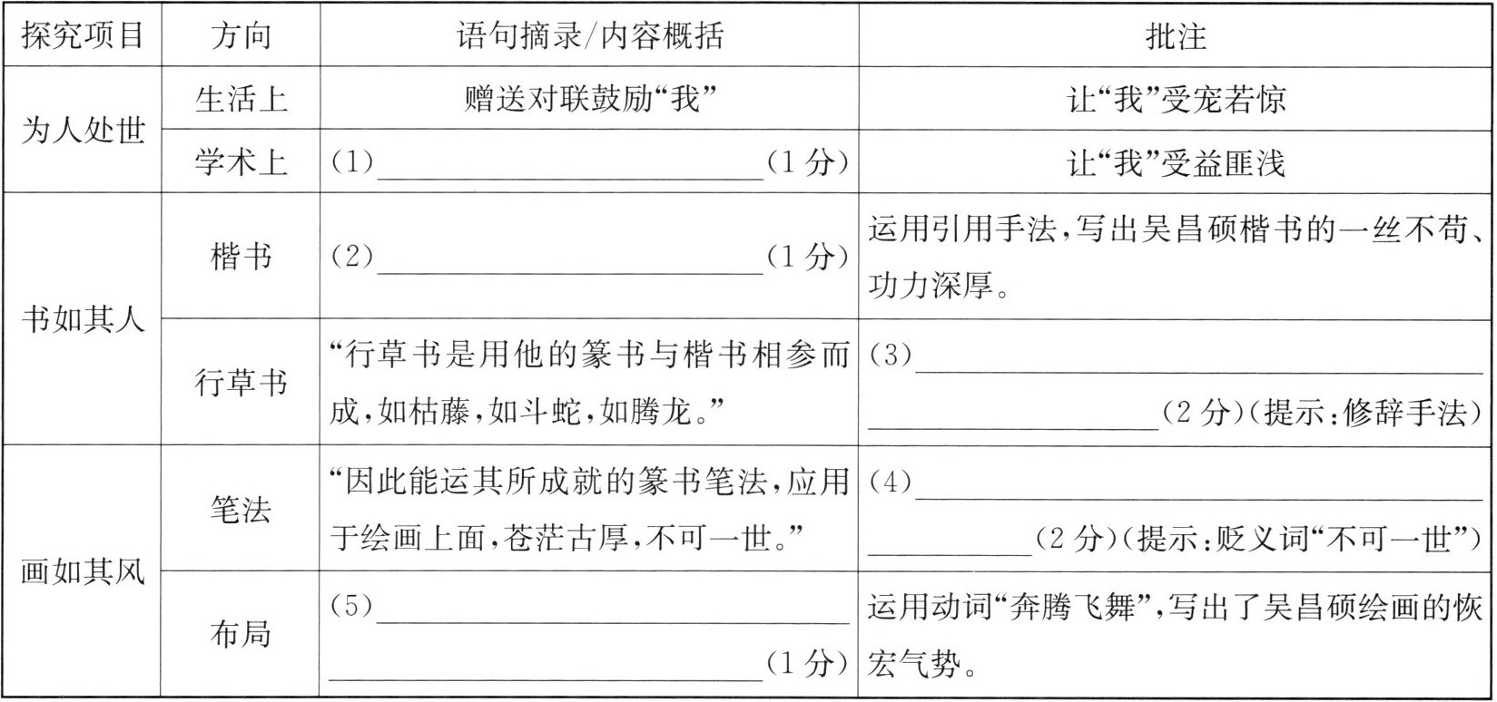 (3)运用比喻和排比的修辞手法,(1分)形象地写出吴昌硕的行草书一气相连、不能遏止的特点。(1分)