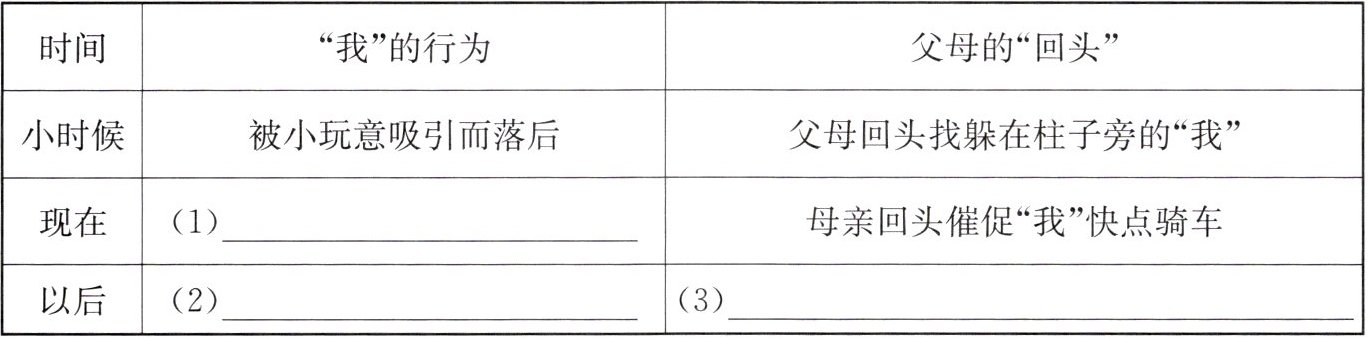 1. 阅读全文,根据提示把下面的表格填写完整。(3分)