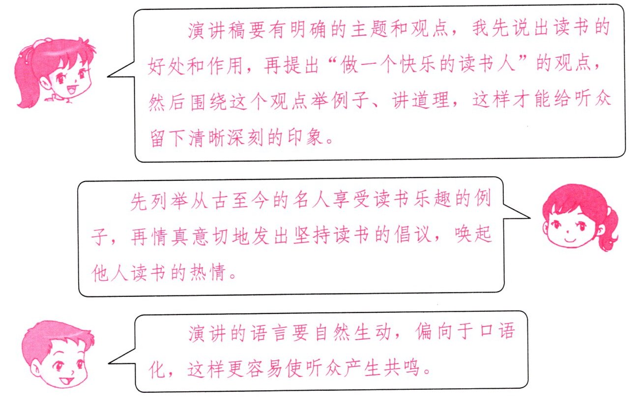 少年正是读书时。读书可以拓宽我们的眼界,使我们获得丰富的知识;读书可以提高阅读能力,培养我们的语感;读书能引导我们明理,使我们学会做人。假如班里要开展以“少年正是读书时”为主题的演讲活动,你会怎样写演讲稿,使自己的演讲更有说服力呢?