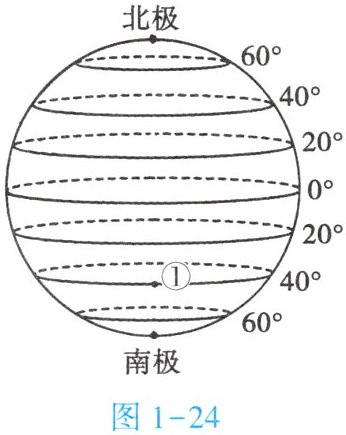 图 1 - 24 为纬线和纬度示意图。据此完成 1~2 题。