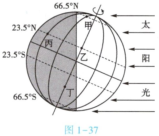 图 1-37 为地球某日光照图。据此完成 5~6 题。