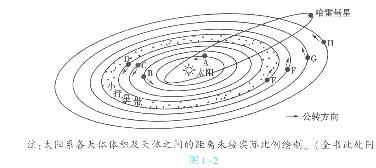 (2)写出图 1-2 所示太阳系中字母所代表的行星名称。