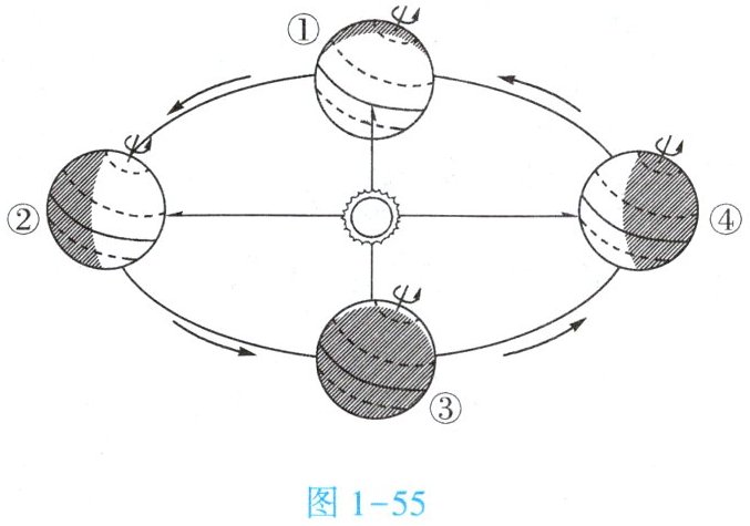 2023 年 12 月 22 日,第 78 届联合国大会协商一致通过决议,将中国春节(农历新年)确定为联合国假日。图 1 - 55 为地球公转示意图。据此完成 13 ~ 15 题。