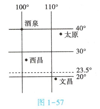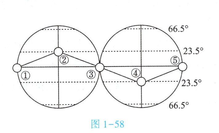 。(2) 2024 年 2 月 23 日卫星发射时,太阳光直射点位于图 1 - 58 中