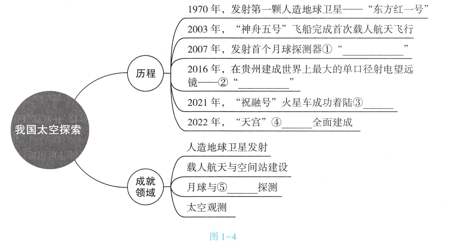 3. 读教材第 9 页图 1.4,举例说出我国太空探索的历程和成就领域。