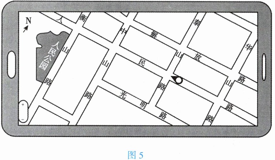 小明爸爸开车带他们一家到人民公园游玩。图 5 是他们途中使用的手机导航软件截图。据此完成 11~13 题。