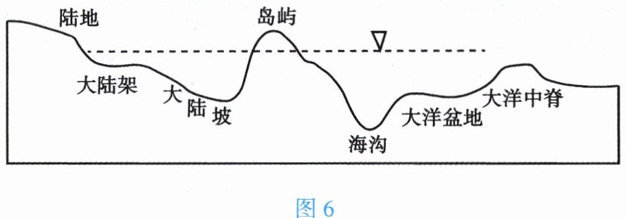 2024 年 11 月 17 日,由中国自主设计建造的首艘大洋钻探船“梦想”号正式建成入列。该船最大钻深 11 000 米,是保障国家能源资源安全和支撑海洋强国建设的“核心利器”,将帮助人类进一步探索和揭开地球深处的奥秘。图 6 为海底地形示意图。据此完成 14~15 题。