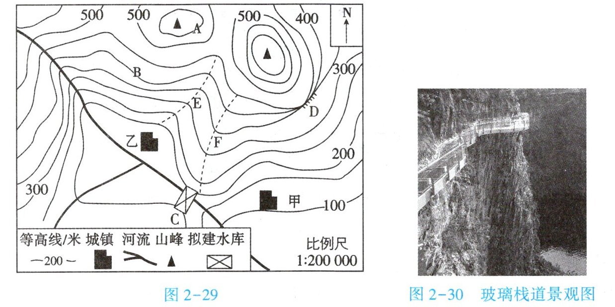 。(2)考察期间同学们途经图 2 - 30 所示玻璃栈道,该景观出现在图 2 - 29 中的