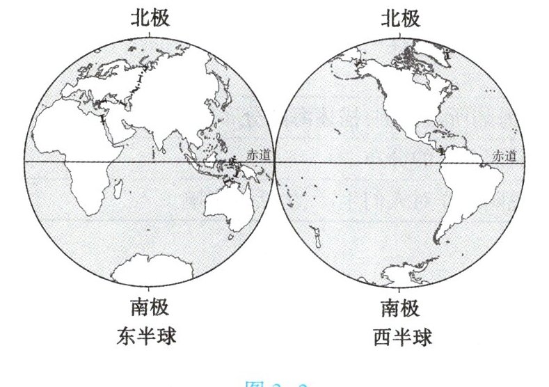 图3 - 2为东、西半球海陆分布示意图。据此完成1~2题。