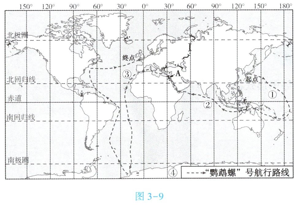 材料二 图 3 - 9 为“鹦鹉螺”号航行路线示意图。