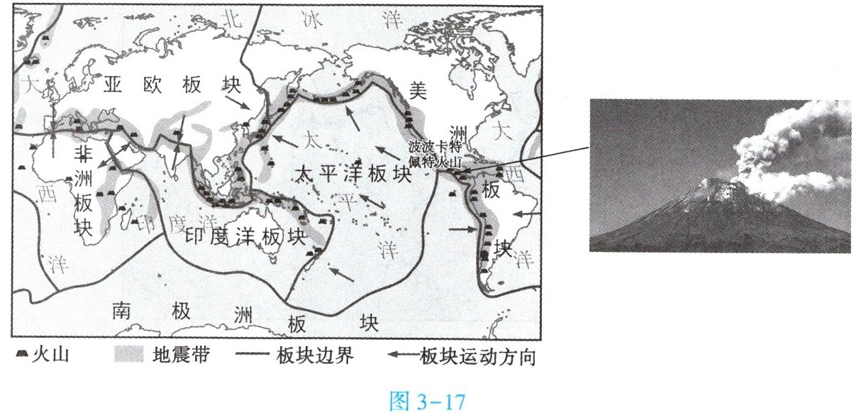 (4)用板块构造学说解释波波卡特佩特火山是世界上最活跃的火山之一。