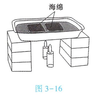 实验二:如图 3 - 16 所示,利用铝箔盒、海绵、蜡烛、水等材料制作模型,模拟板块运动。