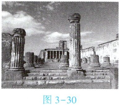 材料三 79 年,维苏威火山爆发,位于其南坡的庞贝古城被封存在冷却凝固的火山灰中,使得古罗马时代的街道、房屋保存完整,为了解古罗马社会生活和文化艺术提供了重要资料。1994 年,庞贝古城被列入世界文化遗产名录。图 3 - 30 为庞贝古城遗址景观图。