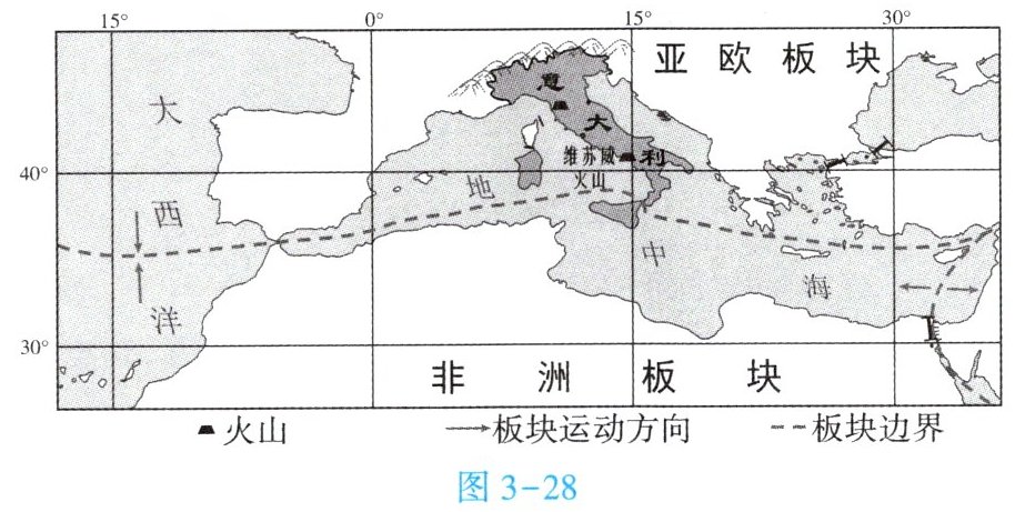 。(2)利用板块构造学说解释维苏威火山爆发的原因。