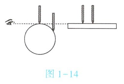 7.将篮球作为地球,将铅笔作为帆船,笔尖朝下(图1-14),开展演示地球形状的实验。据此完成下列问题。