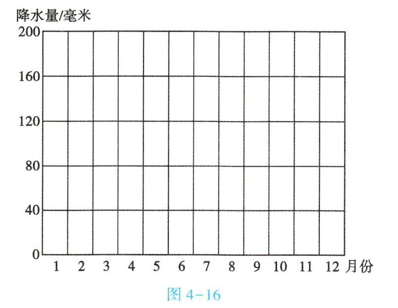 (1)在图4-16中绘出该地各月降水量柱状图。