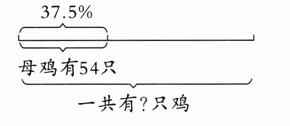 解:设一共有x只鸡。 37.5%x=54 x=144 答:一共有144只鸡。