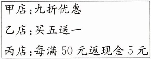 五、李老师和王老师带班上42名同学去秋游,班长负责买饮料。一种饮料每瓶2.5元,三家店都在进行促销活动。若你是班长,要给每人买一瓶饮料,去哪家店买最合算?
